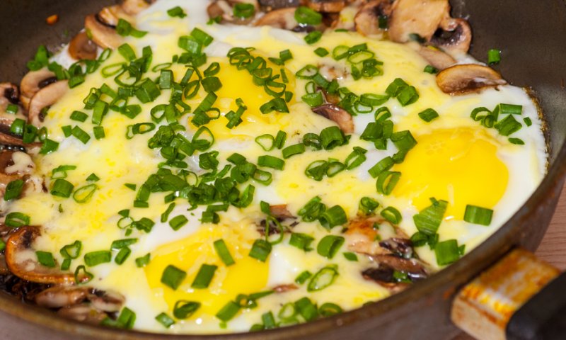 ארוחת ערב בקלאס: פטריות שמפיניון מטוגנות עם ביצים ובצלים