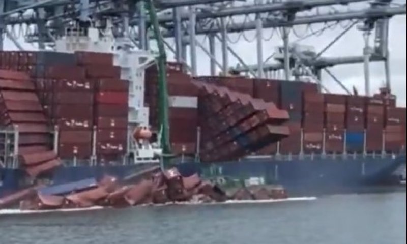 תיעוד חריג מקליפורניה: עשרות מכולות נופלות בזה אחר זה לתוך המים