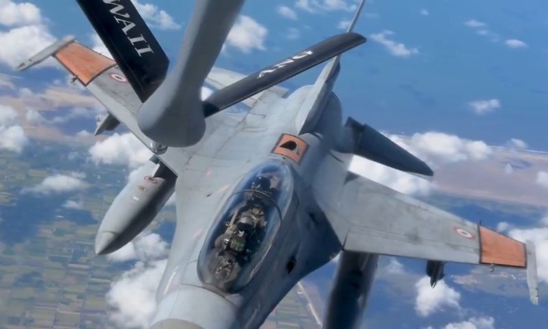 מטוס תדלוק אמריקאי מתדלק מטוס F-16 של חיל האוויר המצרי