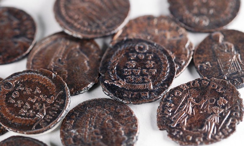 מטמון נדיר של 22 מטבעות ברונזה בני יותר מ-1,600 שנה (המאה ה-4 לספירה), התגלה בחלל קטן בעומקה של מערכת מסתור תת קרקעית מתחת ליישוב הקדום חורבת חוקוק שבגליל התחתון.