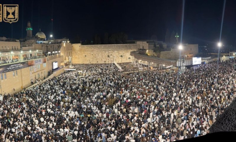 50 אלף איש השתתפו הלילה (א') ערב ראש השנה תשפ"ו במעמד הסליחות המרכזי והתרת נדרים והתרת קללות ברחבת הכותל המערבי.
