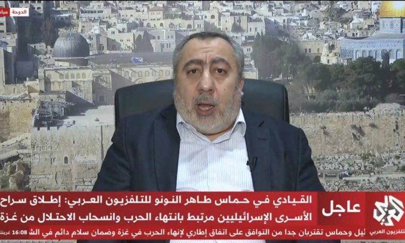 בכיר חמאס טאהר א-נונו התייחס הערב בריאיון לערוץ אל-ערבי הקטארי לדיווחים על עסקת חטופים מסתמנת: "עד כה לא קיבלנו עותק של התוכנית האמריקנית. נשק ההתנגדות קשור להקמת מדינה פלסטינית, ושחרור החטופים הישראלים קשור לסיום המלחמה ולנסיגה ישראלית מעזה. אנחנו רציניים לגבי שחרור החטופים במסגרת הסכם שיסיים את המלחמה בעזה ויבטיח נסיגה ישראלית".