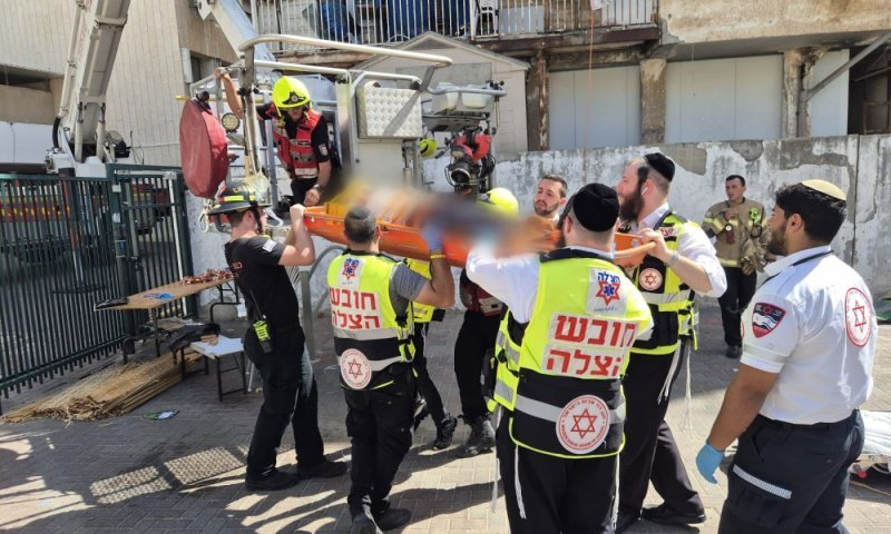 בני ברק: קשיש נפל מערימת כיסאות במהלך בניית סוכה, חולץ במנוף