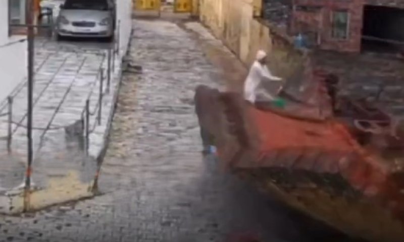 הודו: אדם ניצל מקריסת חומה ברגע האחרון