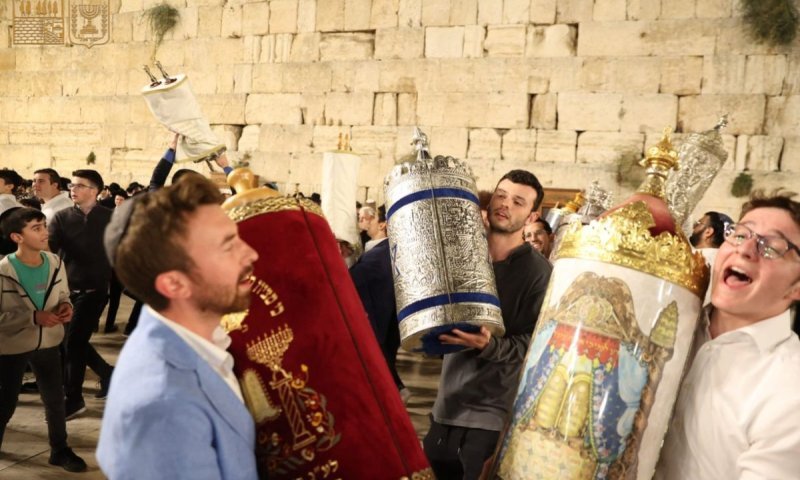 באמירת תודה ובפרקי הלל והודיה: אלפים השתתפו מוצאי שמחת תורה בהקפות שניות בכותל המערבי בסימן 'אחדות ישראל'