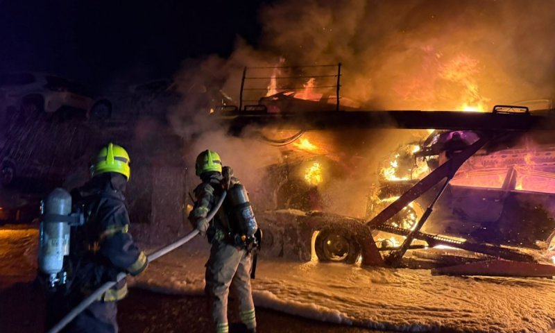 מפקד האירוע, רב רשף מיכאל גולדנברג, מסר: "בהגיענו למקום הבחנו במספר רכבים שעל המשאית שעולים באש, כולל רכבים חשמליים. האש התפשטה לשטח פתוח סמוך, ולוחמי האש פועלים לבלום את הלהבות ולכבות את מוקדי השריפה".
