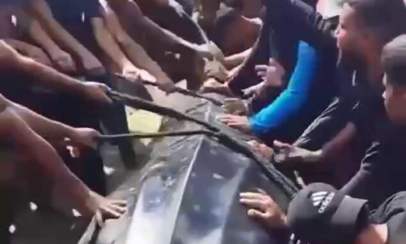 קשור ומוקף בהמון פלסטיני: הסוף העצוב של הכריש הלווייתני