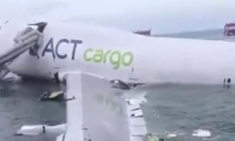 מטוס מטען החליק ממסלול המראה אל הים: שני עובדי שדה תעופה נהרגו