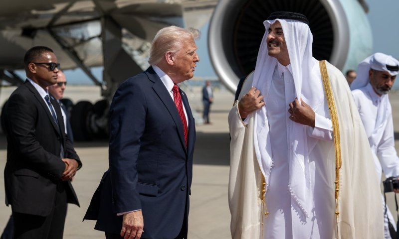 הנשיא טראמפ נפגש עם אמיר קטאר על סיפון מטוסו ואמר: "יש לכם מזרח תיכון בטוח כרגע, ותשמרו עליו כך עוד זמן רב מאוד"
