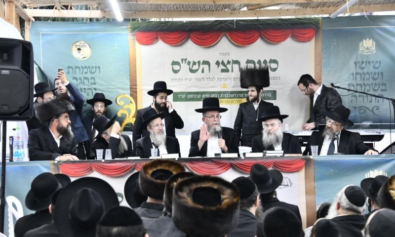 לרגל סיום לימוד סדר חצי הש"ס בפעם הרביעית במסלול "כדרכו - 8 דף ליום", במפעלי התורה "שיח התורה" שנוסדו לעילוי נשמתו ולהמשך דרכו של מרן שר התורה הגר"ח קנייבסקי זצ"ל נערך מעמד הסיום בסוכה ברשב"ם בהשתתפות גדולי ישראל. תיעוד מהמעמד