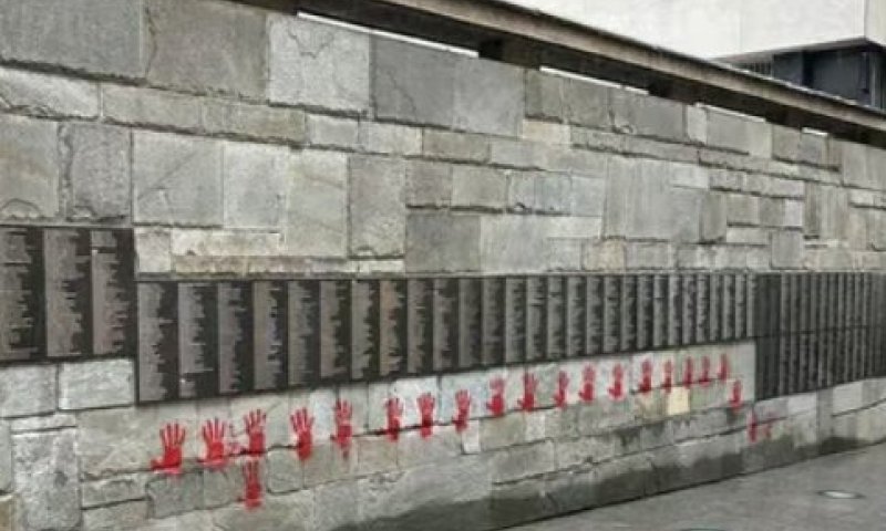 "ידיים אדומות" נגד יהודים רוססו תמורת כסף על אנדרטת השואה