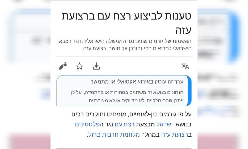 מייסד ויקיפדיה עצר את הערך על "רצח העם בעזה" בשל הטיה נגד ישראל