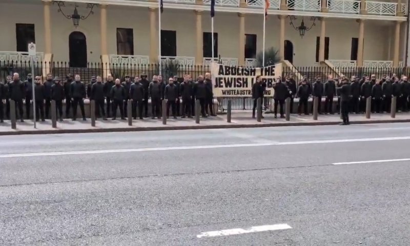 מפגן ניאו-נאצי התקיים הבוקר (שבת) מחוץ לבניין הפרלמנט של מחוז ניו סאות' ויילס באוסטרליה, המחוז בו שוכנת העיר סידני. בסרטון מהאירוע נראים כ60 גברים לבושים בשחור כשהם עומדים מחוץ לבניין ולצדם כרזה עם מסר אנטישמי עליה נכתב: "ABOLISH THE JEWISH LOBBY" - "לבטל את הלובי היהודי"