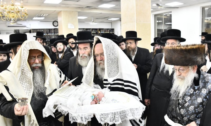 בבית המדרש של חסידות שבט הלוי בבני ברק נערכה שמחת הברית לצאצא האדמו"רים משבט הלוי - נדבורנה חיפה וזידיטשוב. צפו בתיעוד של הצלם שוקי לרר מהשמחה
