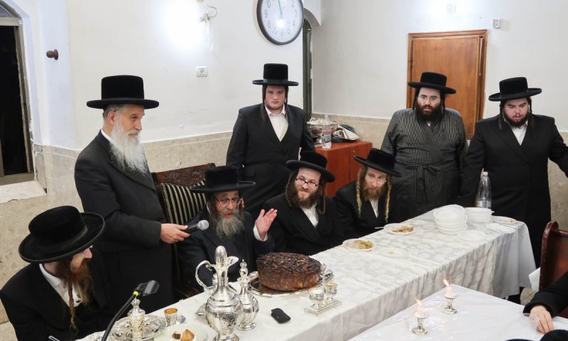 סעודת הודאה לרגל יום ההצלה של האדמו"ר בעל ה'קדושת צבי' ובנו הרבי בעל הרזא דאמונה מקרעטשניף סיגעט זצ"ל שניצלו בתאונת דרכים קשה. הבן והנכד האדמו"ר מקרעטשניף סיגעט ערך סעודה בבית המדרש בבית ישראל בירושלים. הצלם מ.א. נוימן מגיש גלריה