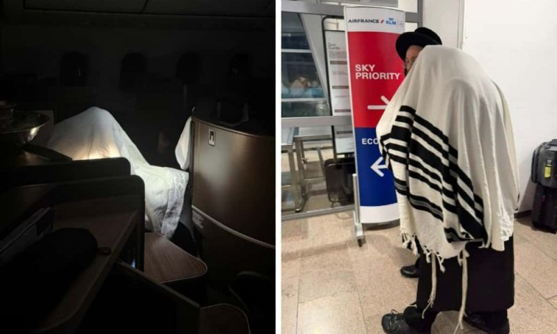 ביקור בזק: המשפיע המריא לארה"ב וישב כל הטיסה עטוף בטלית