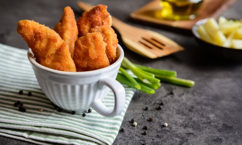 מכניסים פנינה כמות של נתחי חזה עוף לטבילה עמוקה.