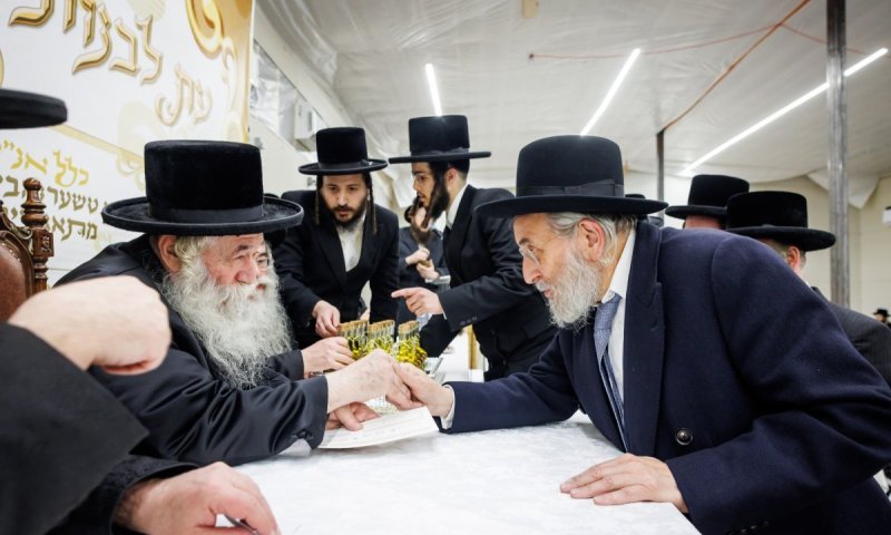 דינר לטובת המשך בניין ביהמ"ד הגדול: הרבי מטשערנאביל חילק שמן לנדיבים