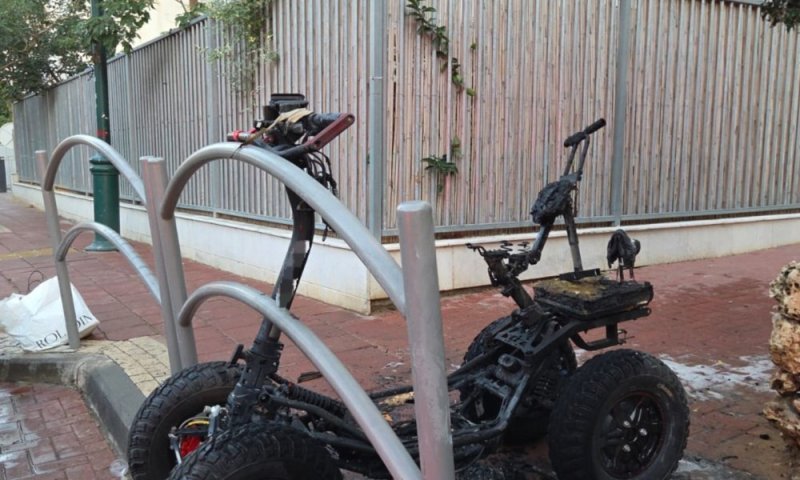 אישה בת 73 וילדה בת 5 נפצעו בהתנגשות קלנועית בגדר ברחוב עזריאל ברמת גן | לאחר שהתרחקו בזמן הכלי התלקח | השתיים פונו לבית החולים במצב בינוני וקל