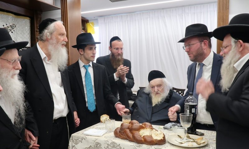 תיעוד: פוסק הדור ערך שבע ברכות במעונו לרגל שמחת נישואי הנינה