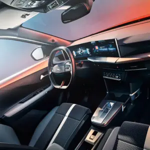 ארכיטקטורת הפנים ממשיכה את השפה העיצובית של המרכב עם קווי אופק ברורים מאד וחיתוך יעיל של כל חלק פונקציונאלי. גלגל ההגה, הקונסולה המרכזית, צד הנוסע וצד הנהג כל אחד מקבלים מישור משלו. בהחלט עיצוב יוצא דופן. בולט בעיקר המרחב הדיגיטלי המתקדם שבתא המחבר יחדיו לוח מחוונים דיגיטלי 10 אינץ' ומסך מולטימדיה עם 10 אינץ' נוספים המוטה מעט כלפי הנהג. מתגים פיזיים קיימים לשם הנוחות והבטיחות, ממשקי Apple CarPlay ו-Android Auto קיימים עם חיבור אלחוטי לניידים תומכים וכן, גם ממשק המערכת הוא בעברית מלאה.