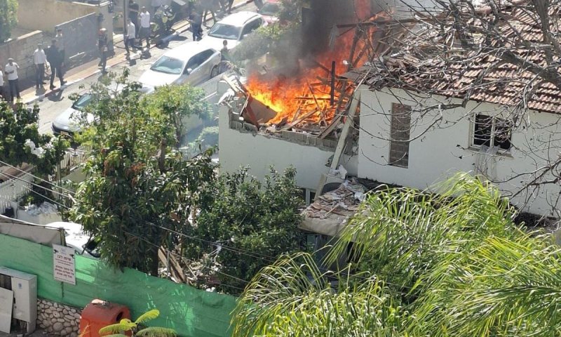 תיעוד: בית עולה באש לאחר פגיעה ברחובות; פצוע קל במקום