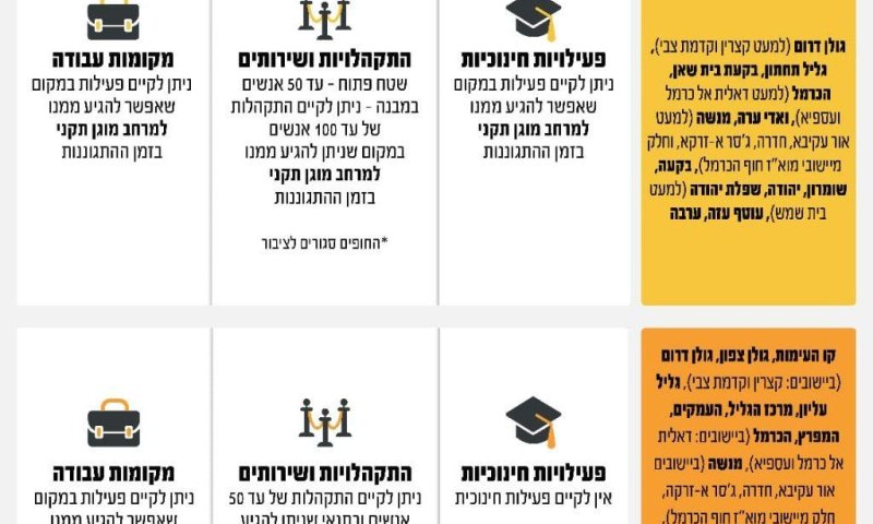 פיקוד העורף מקיים הערכת מצב שוטפת לבחינת הפעילות החינוכית וההתקהלויות במדרג פעילות מצומצמת.