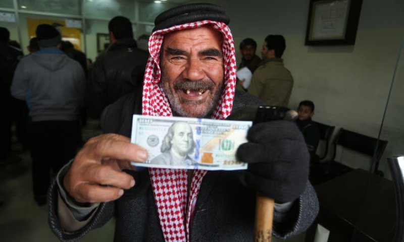 פלסטיני מציג את הכסף שקיבל מקטר צילום: פלאש 90