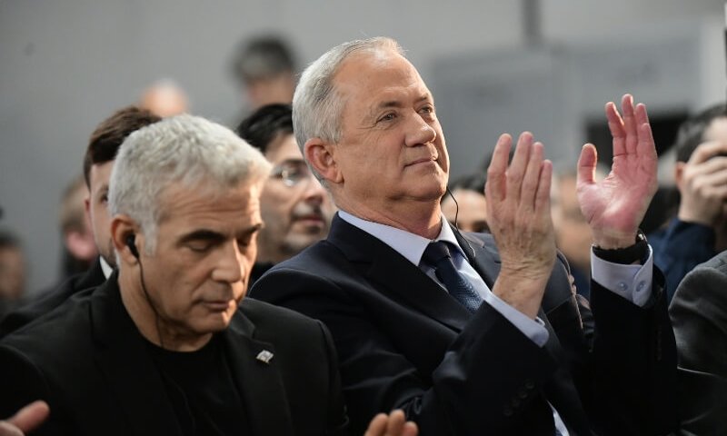 בני גנץ ויאיר לפיד בכנס בחירות צילום: תומר נויברג, פלאש 90