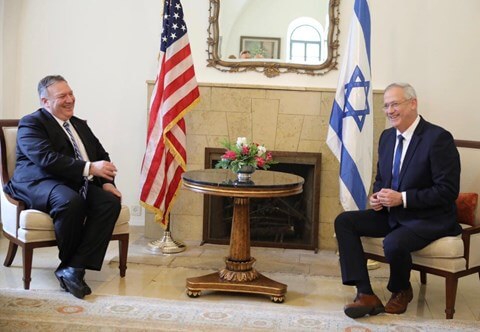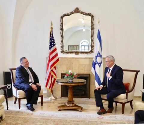מזכיר המדינה האמריקאי מייק פומפאו נועד כעת עם יו"ר כחול לבן וראש הממשלה המיועד בני גנץ בשגרירות ארצות הברית בירושלים, הפגישה התקיימה לאחר לחצים גדולים מצד סביבתו של גנץ.
