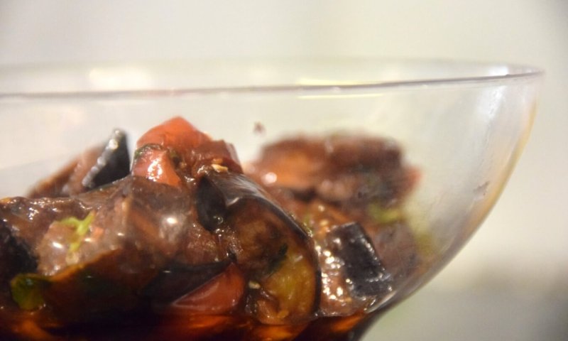 מתכון לסלט חצילים מטוגנים ופלפלים ברוטב פיקנטי