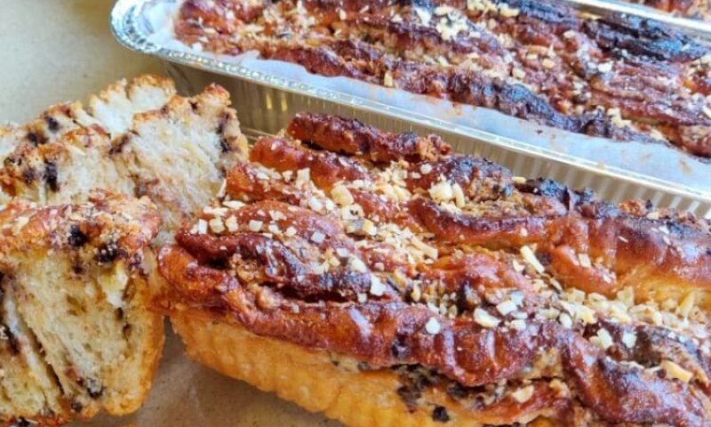 עוגת שמרים קראנץ' טעימה ומושלמת במלית מיוחדת של חלבה עם שוקולד וקוקוס, מתאימה להגשה לאורחים, לשבתות, חגים או פתיחת צומות