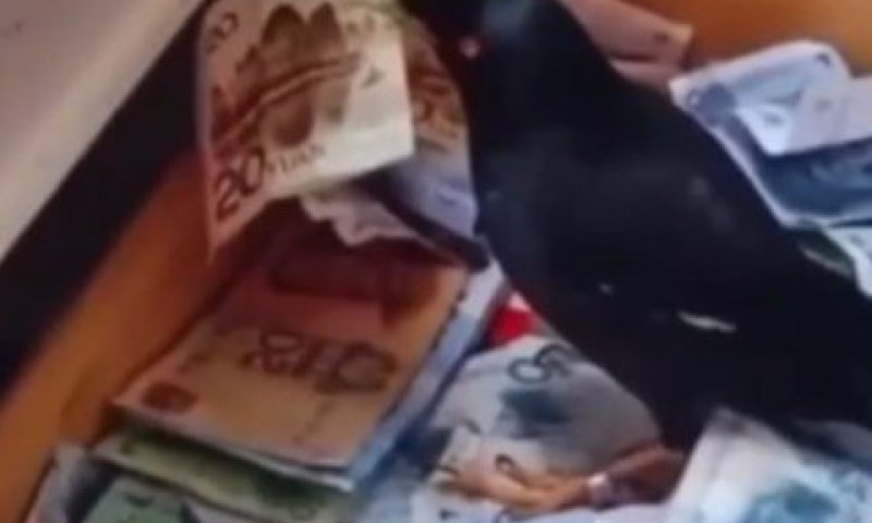 תיעוד הופץ ברשת החברתית בו נראה עורב נכנס דרך חלון בית ומניח שטר כסף בתוך מגרה מלאה שטרות, כנראה שמדובר בעורב חובב כסף או הבעלים שלו • צפו